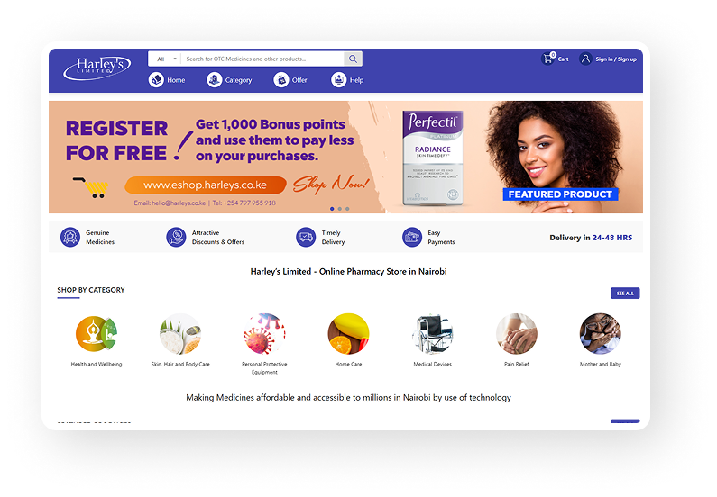 Harley’s, a leading pharmaceutical and healthcare provider in East Africa with a rich legacy spanning 40 years, wanted to enter the booming digital pharmacy space. With a strong physical presence and a loyal customer base in Kenya, Harley’s aimed to build an ePharmacy platform that would reflect their trusted reputation while offering the convenience of online medicine ordering. Their objective was to develop a complete ecosystem consisting of a web portal, mobile applications, and a delivery management system that would allow them to operate smoothly, manage increasing order volumes, and attract a younger, tech-savvy audience. Partnering with EMed HealthTech, they set out to create a modern, scalable, and feature-rich platform tailored to their needs and goals.