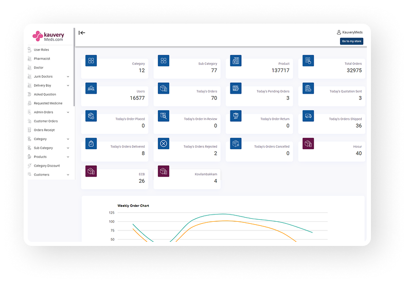 Kauvery Meds is the online pharmacy arm of the Kauvery Hospital Group, operating under the name Curtis Drug Point Private Limited. Headquartered in Chennai, they manage a vast network of vendors and generate annual revenues of approximately INR 25 crores. Their inventory includes prescription drugs, OTC products, cosmetics, and generic medications, all offered through their growing online platform. As part of their digital transformation, Kauvery Meds sought a partner who could help them build a future-ready ePharmacy solution that would not only handle large daily order volumes but also integrate with their existing ERP. They needed a system that offered both operational efficiency and customer-friendly features. EMed HealthTech became their technology partner and worked closely with them to deliver a scalable and feature-rich solution.