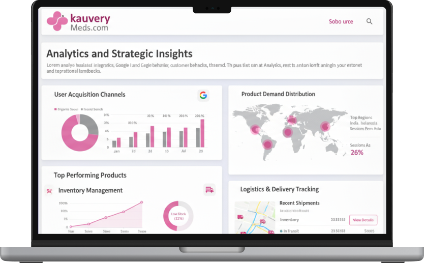 EMed HealthTech collaborated with Kauvery Meds to develop a multi-platform digital pharmacy solution tailored to their unique needs. By integrating their existing ERP with our pharmacy software, we enabled end-to-end automation in inventory and order management. Our team also helped implement marketing features and notification systems that enhanced user engagement. Alongside, we provided consulting on Google Analytics to help them make informed marketing decisions and optimize business performance.