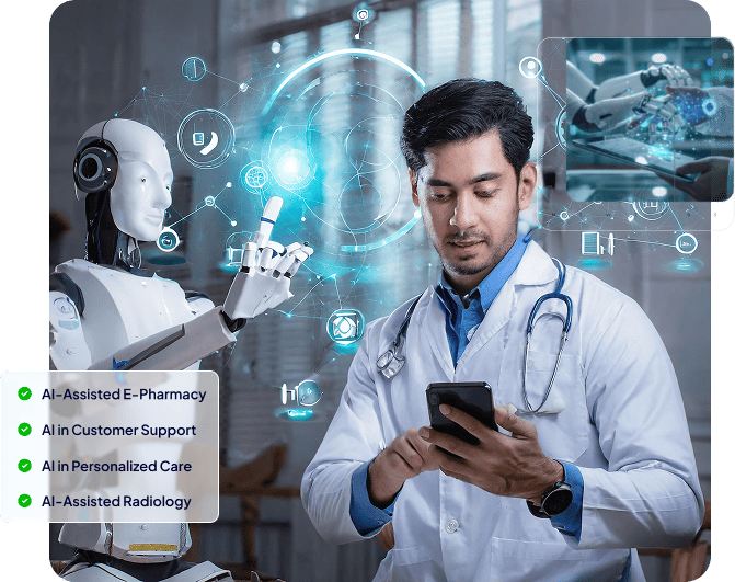 Our aim is to transform the healthcare industry by implementing Artificial Intelligence and Machine Learning. AI and ML help healthcare companies to optimize service management, improve the standard of care, generate more revenue, increase productivity, and decrease risk.