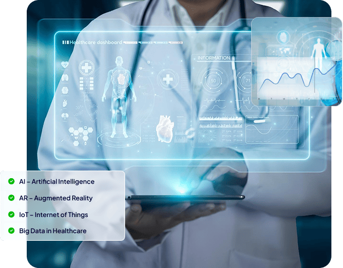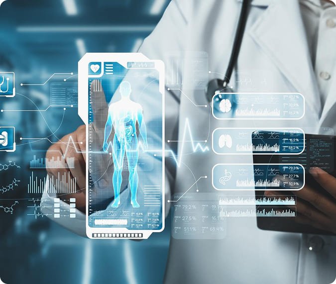 We provide digital transformation in healthcare to efficiently manage patient and hospital data. By leveraging advanced technology, we enhance healthcare operations, streamline physicians’ workflows, optimize systems, improve patient outcomes, and reduce human errors. Our cost-effective solutions revolutionize healthcare, ensuring seamless, efficient, and data-driven management for better patient care.