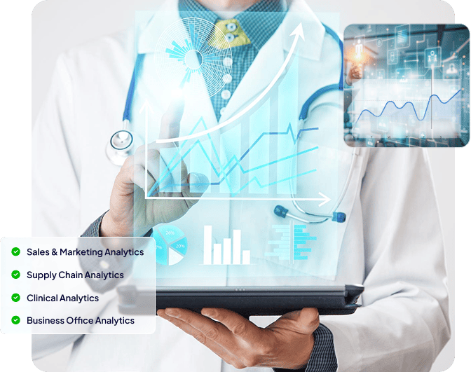 We provide descriptive, diagnostic, predictive, prescriptive, preventive, and real-time analytics, covering areas like clinical operations, supply chain, sales & marketing, customer engagement, and revenue cycle management.